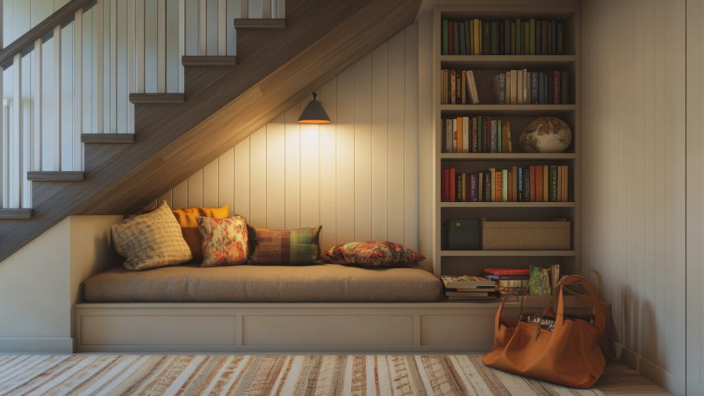 Envie d’un coin détente ? Transformez votre sous-escalier en espace cosy :